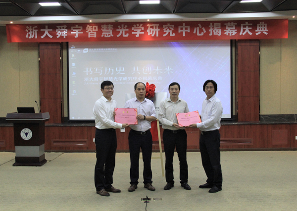 浙大光电系教授刘旭、舜宇中央研究院研究所总监胡增新还分别接受了聘书,被聘任为中心的正、副主任。