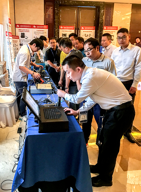 展台前咨询和了解广东汕头超声电子股份有限公司产品的与会代表和观展人员络绎不绝。相控阵全聚焦实时3D超声成像系统CTS-PA322T吸引了与会代表的极大关注以及大量观展人员的围观。