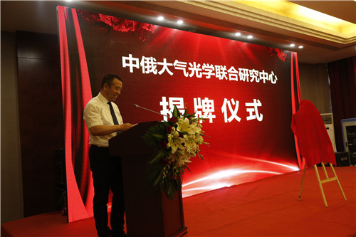 宛晓春在讲话中指出,5月26日至6月2日,中共安徽省委书记、省人大常委会主任李锦斌率省经贸代表团访问西班牙和俄罗斯。期间,在李锦斌书记的见证下,中科院合肥物质科学研究院与俄罗斯科学院等科研机构签订了多个科技合作协议,其中就包括与俄罗斯大气光学所等单位推动“中俄大气光学联合研究中心”在合肥落地。此次揭牌仪式的举行,标志着协议的进一步落实。他表示,安徽省科技厅将全力支持联合中心的建设,支持中科院合肥物质科学研究院的发展,一如既往地做好保障和服务工作。
