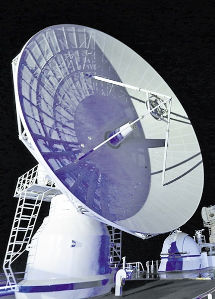 6月25日,远望3号船护送第46颗北斗导航卫星成功入轨。图为远望3号船海上测控的雷达天线。 (新华社发)