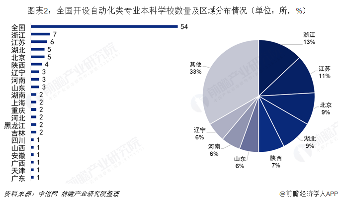 (一)全国54所高校开设自动化专业类,浙江数量第一
