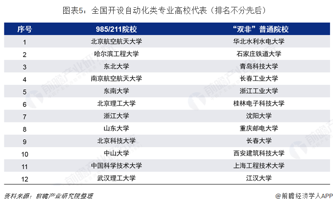 前瞻结合全国开设自动化类专业高校的办学质量及毕业生的社会认可度,对开设了自动化类专业的知名高校进行列示: