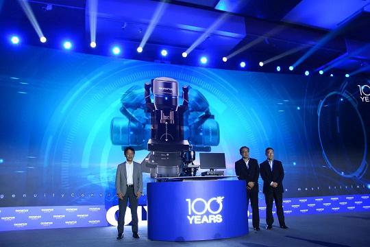 在一段3D全息影像中奥林巴斯为大家回顾了企业的百年征程,也将发布会现场的气氛推向了高潮。清水嘉毅先生、关谷亮先生、隐岐浩史先生共同走向主席台,开启了奥林巴斯2019全新数码显微镜的揭幕仪式。