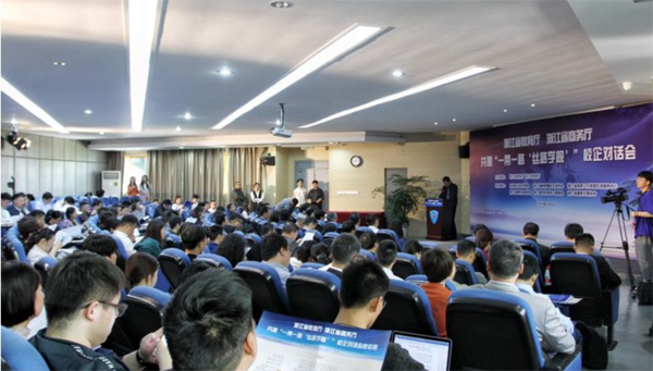 5月9日,浙江省教育厅、浙江省商务厅在杭州职业技术学院召开共建“‘一带一路’丝路学院” 校企对话会,鼓励企业与高校携手,计划通过3年时间,在“一带一路”沿线国家建设15-20所“丝路学院”,实施人才培养、技能培训、国别研究、政策咨询、文化交流等项目。来自浙江全省的40所高校、56家企业的100余名代表共商校企合作新模式。