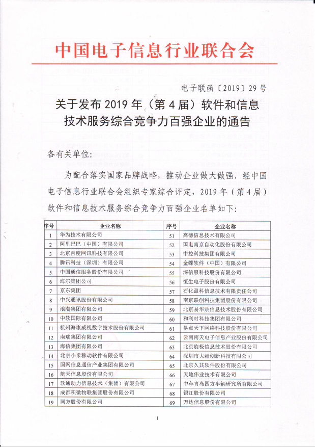 原标题:实力获评!和利时再次跻身“2019软件和信息技术服务综合竞争力百强”榜单