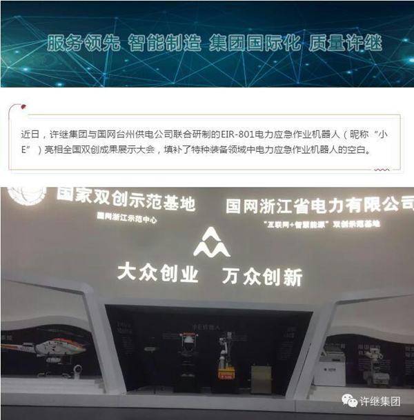 许继与国网台州联合研制的电力应急作业机器人亮相全国