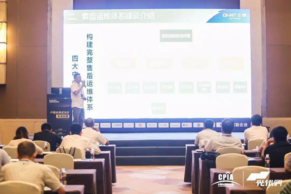 正泰应邀参加此次会议,正泰安能运维服务经理涂波参与了“分享”环节,通过详尽的材料和生动的演讲,向在座参会的行业者分享了正泰居民分布式光伏售后体系建设和智能运维的相关主题内容,引来了阵阵掌声。