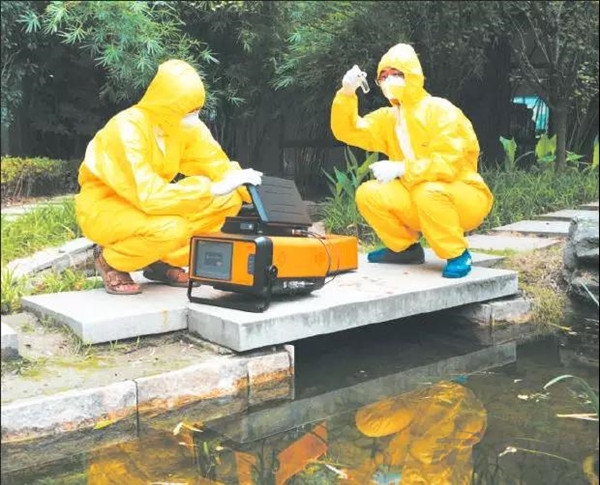→在浙江省杭州市滨江区,水质监测人员通过Mars-400设备精准监测水质各项指标,