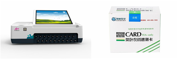 数字化农药残留快速检测仪:仪器集成分光光度模块、干式农残卡模块、数字化管理模块、无线通信模块于一体,开放式的智能操作系统更方便、快捷。可应用于茶叶有机磷、氨基甲酸酯、菊酯类、有机氯四大类农药残留的快速检测。