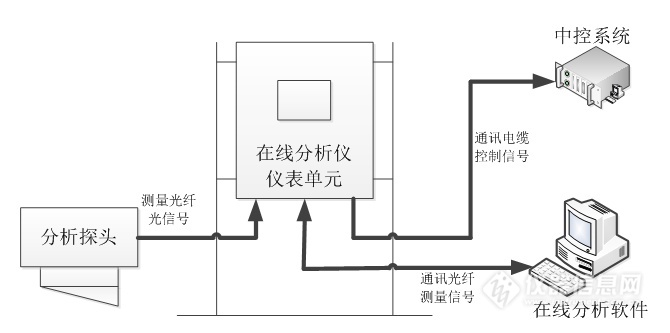 聚光科技在四川某酒厂成功实施了一套用于酒醅检测的近红外在线分析系统。其系统框架如下图5所示。在线近红外系统以在线近红外分析仪为核心,包括在线近红外仪表单元、分析探头以及有关辅助设施等组成部分。整个系统具有如下特点:可以同时测量水分、淀粉、酸度等多个参数,测量速度快,具有很高的测量精度,具备自动参比校准功能,从而很好地校正光学视窗污染的影响,系统结构坚固抗震动能力强,可适应于恶劣现场环境等特点。