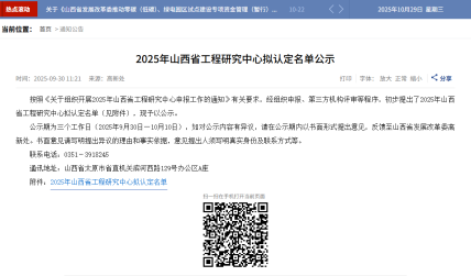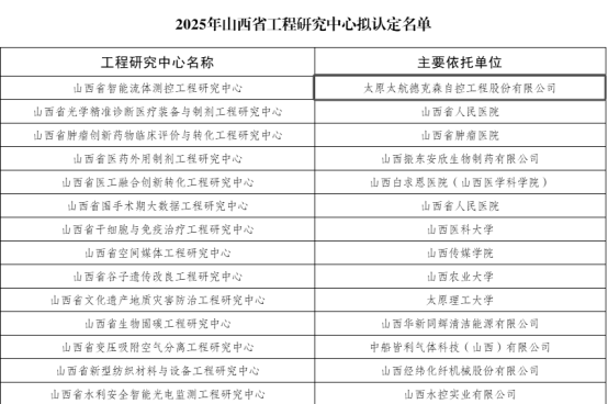 近日,山西省发展和改革委员会正式发布《关于认定2025年山西省工程研究中心的通知》(晋发改高新发〔2025〕303号)文件,由太航德克森申报的“山西省智能流体测控工程研究中心”凭借雄厚的技术实力、清晰的研发路径与卓越的产业价值,成功入选,荣获官方认定!