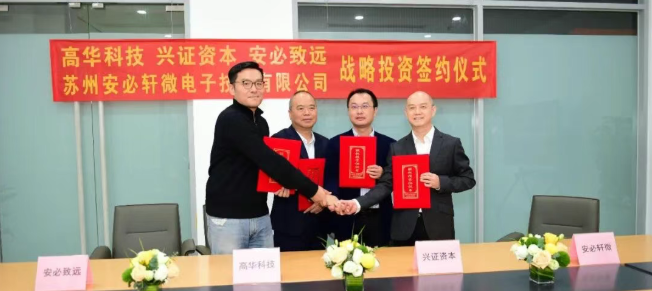 10月30日,高华科技参股安必轩战略投资签约仪式于苏州高新区集成电路创新中心成功举办。在仪式上,南京高华科技股份有限公司董事长、总经理李维平、兴证资本先进制造中心总经理徐长银、安必致远总经理曹雪冬与苏州安必轩微电子技术有限公司董事长蔡激文共同签署股权投资合作协议,标志着高华科技和安必轩在光电传感领域的深度合作正式启动。