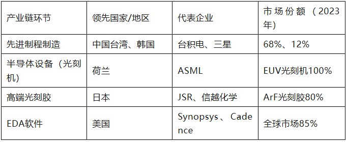 全球集成电路产业链呈现“寡头垄断+区域集群”特征。中国台湾凭借台积电的3纳米量产能力垄断先进制程,韩国三星则在存储芯片领域构筑壁垒;荷兰ASML通过整合全球供应链,成为EUV光刻机的唯一供应商,其设备出口受国际政治因素直接影响;日本依托百年化工积累,在光刻胶、硅片等材料领域形成技术闭环;美国则通过EDA软件、半导体设备设计等“软权力”,掌控芯片产业的底层规则制定权。