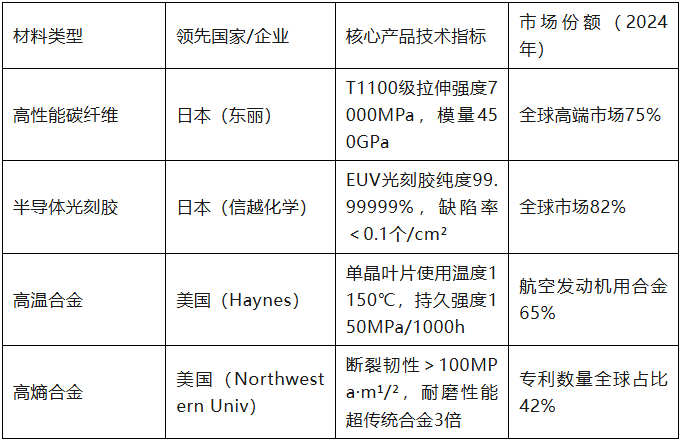 全球先进材料产业呈现“技术壁垒高筑、区域优势分明”格局。日本依托精细化制造传统,在电子化学品、特种纤维领域构筑技术护城河,东丽T1100碳纤维的强度指标比中国同类产品高30%;美国聚焦前沿材料创新,高温合金、高熵合金等军用转民用技术领先全球,Haynes 282合金占据航空发动机燃烧室80%份额;德国则在结构材料领域保持优势,蒂森克虏伯的热作模具钢寿命比中国产品高2-3倍。三国通过“材料研发-器件应用-标准制定”的闭环体系,持续巩固领先地位。