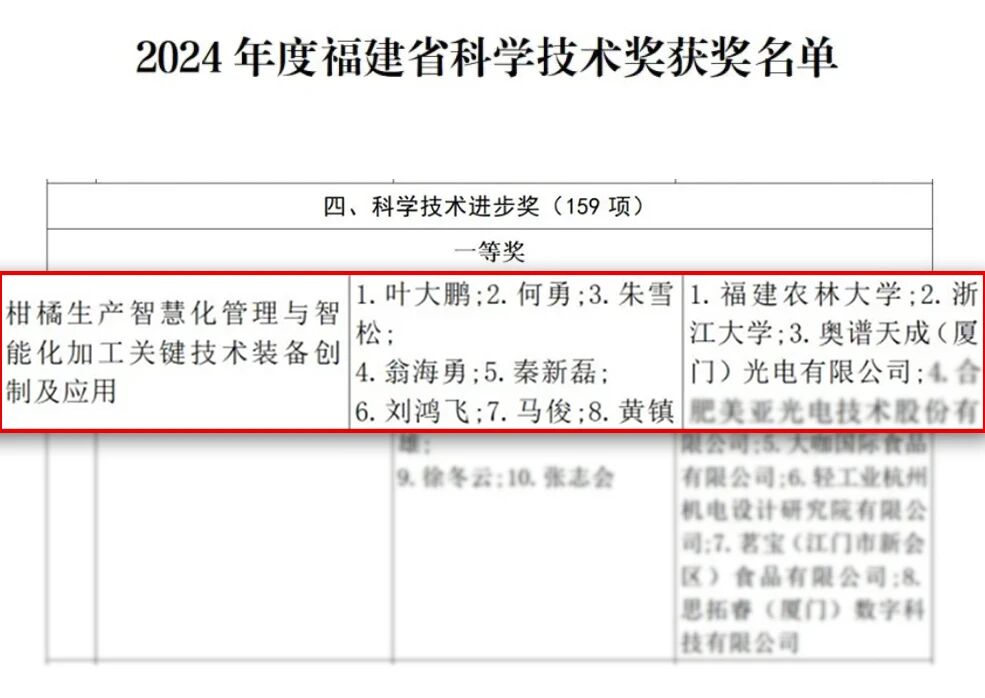 近日,奥谱天成凭借《基于高光谱多谱融合技术的柑橘生长全周期与品质检测系统》荣获福建省科技进步一等奖。该奖项由福建省人民政府设立,是省内最高级别的科技荣誉之一,重点表彰在技术创新、工程应用及行业贡献方面取得突出成果的单位。本次获奖不仅体现了该项目在关键技术上的创新突破,也标志着奥谱天成在农业智能检测装备领域的领先实力得到权威认可。
