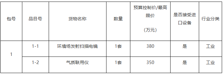 项目名称:中国农业大学理学院环境场发射扫描电镜等采购项目