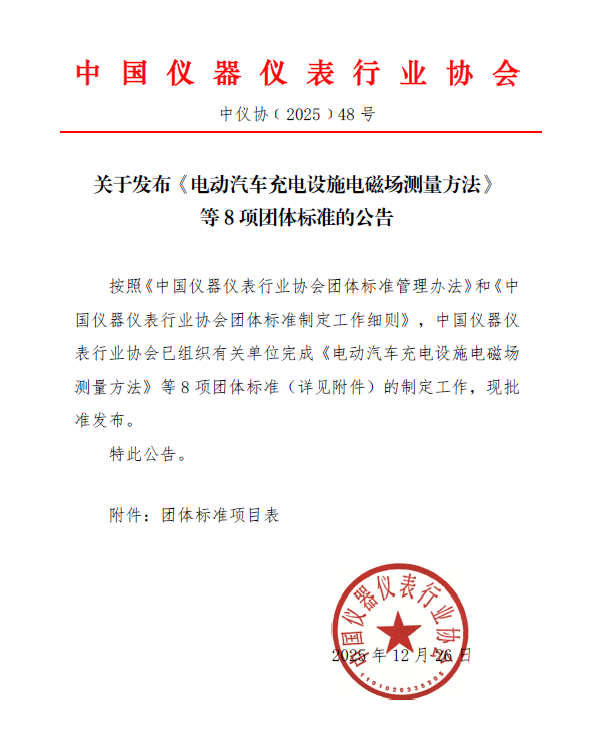 关于发布《电动汽车充电设施电磁场测量方法》等8项团