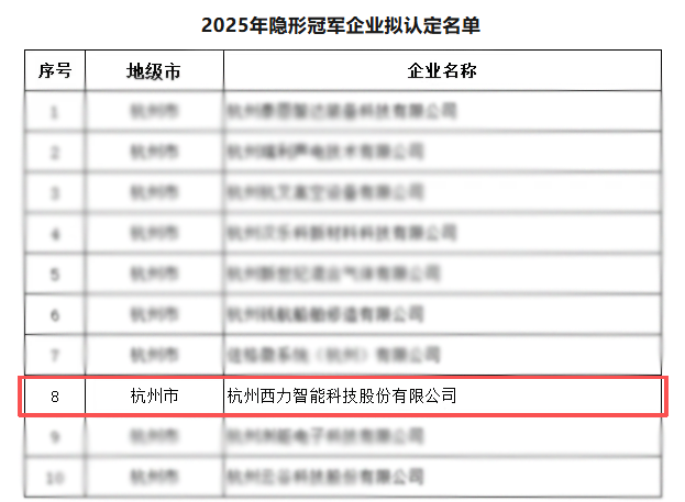近日,浙江省经济和信息化厅公布了2025年度浙江省“隐形冠军”企业名单。西力科技凭借扎实的技术积累、优秀的市场表现与持续的创新能力,成功入选,正式跻身省级“隐形冠军”行列。
