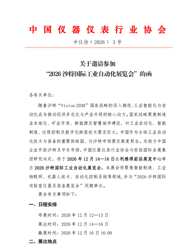 关于邀请参加“2026 沙特国际工业自动化展览会”