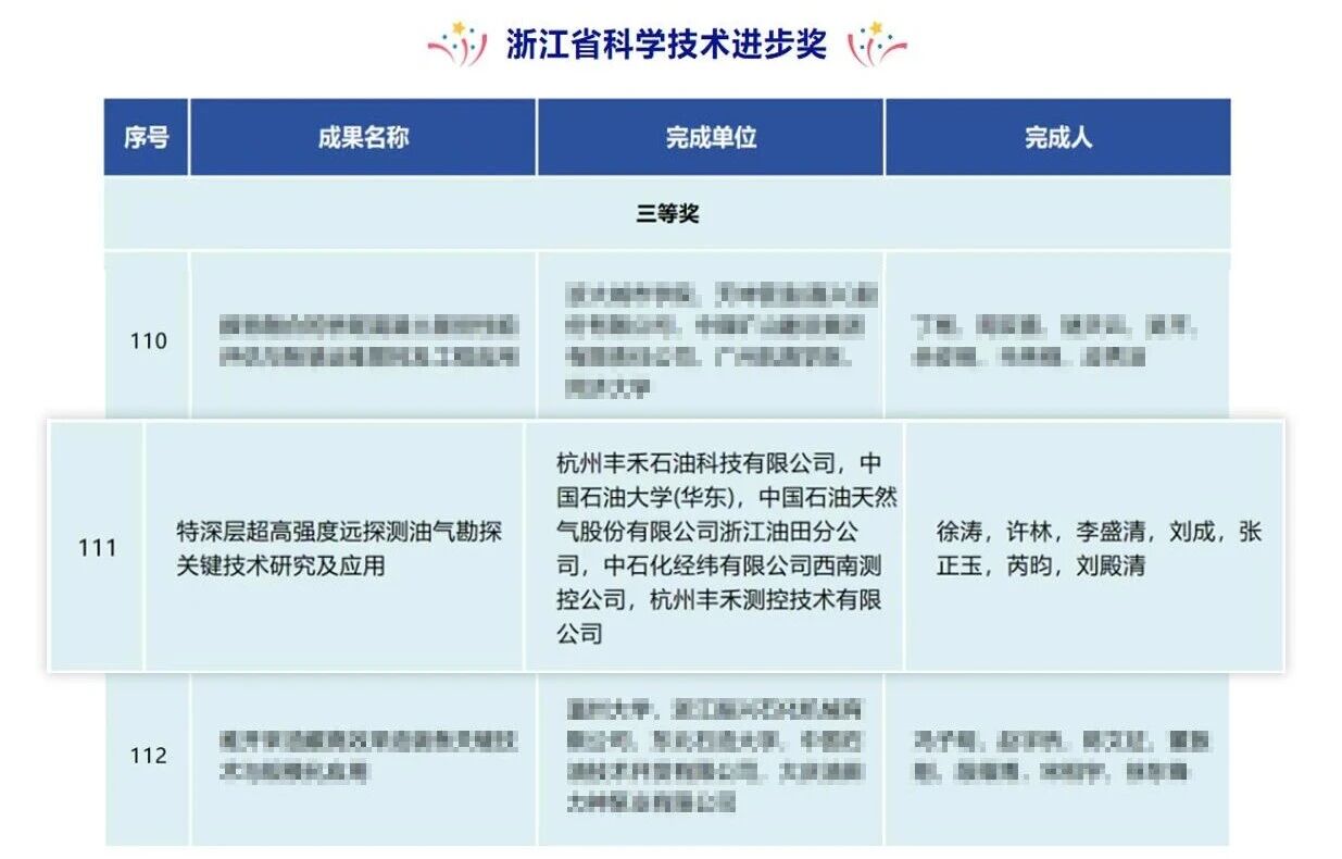 2月9日,浙江省“全省建设一流创新生态打造最具竞争力营商环境大会”在杭州举行。由神开旗下控股子公司杭州丰禾石油科技有限公司(以下简称“神开丰禾”)牵头,联合中国石油大学(华东)、中国石油天然气股份有限公司浙江油田分公司、中石化经纬有限公司西南测控公司以及杭州丰禾测控技术有限公司共同完成的“特深层超高强度远探测油气勘探关键技术研究及应用”项目,荣获浙江省科学技术进步奖-三等奖。