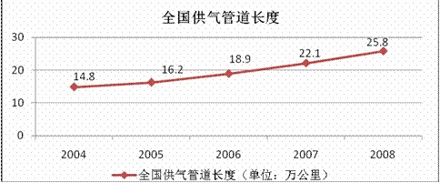 由于瓶装气由单独的配套计量仪器,同时我国《城镇燃气技术规范》规定使用管道燃气的用户应设置燃气计量装置。因此,燃气管道的建设将直接影响燃气表市场。根据《全国城市燃气管网改造规划(2008-2010)》,1990年至2006年,城市燃气行业供求管道长度从2.4万公里增加到18.9万公里,增加了近7倍。2002年至2006年,城市燃气管道年增长1.42-2.74万公里,平均增长率超过13%,而天然气管道的平均增长率则超过20%。