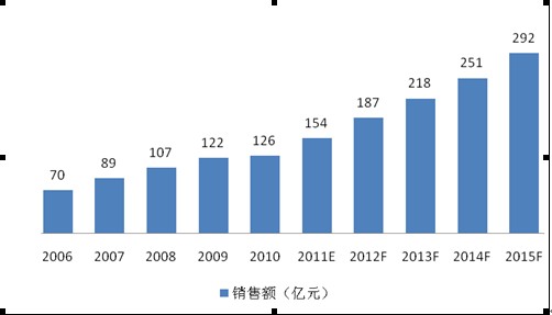 图6:2006-2015年我国工业过程控制变送器市场规模及增长预测