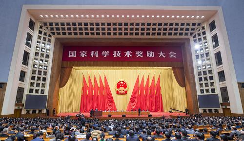 中共中央、国务院1月9日上午在北京隆重举行国家科学技术奖励大会。党和国家领导人习近平、李克强、刘云山、张高丽出席大会并为获奖代表颁奖。李克强代表党中央、国务院在大会上讲话。张高丽主持大会。