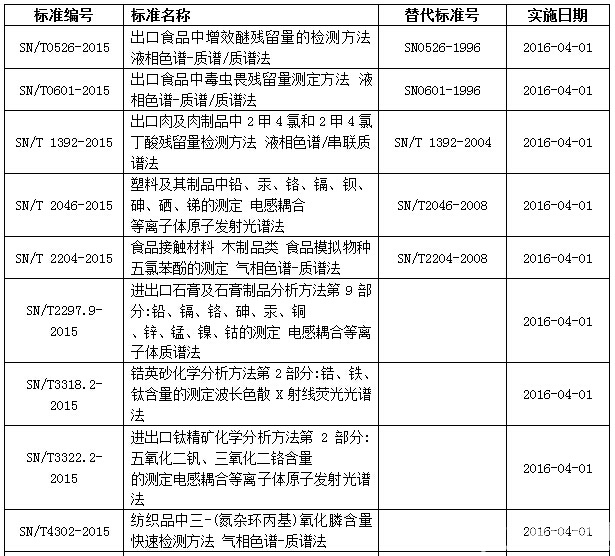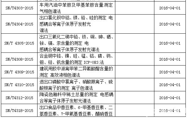 9月2日,质检总局发布关于2015年第三批103项出入境检验检疫行业标准的通知,其中20余项涉及色谱、质谱及光谱仪器检测方法,被代替标准自本批标准实施之日起废止。