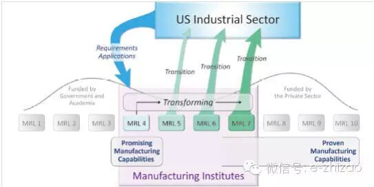 图 向美国工业界转化先进制造能力【制造成熟度等级(MRL)4-7级】