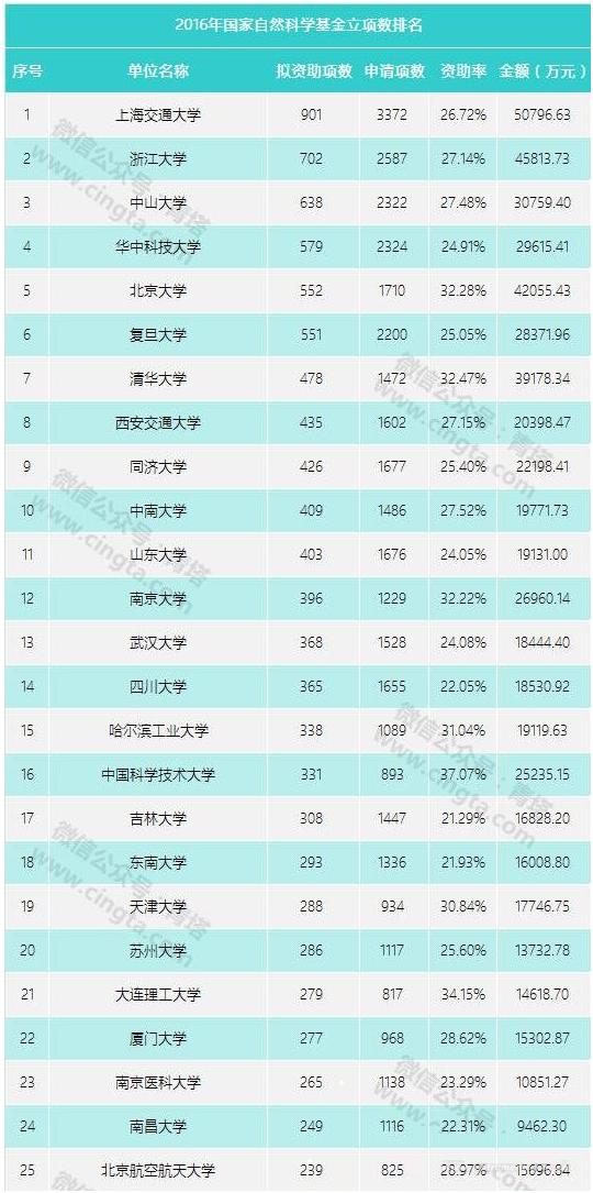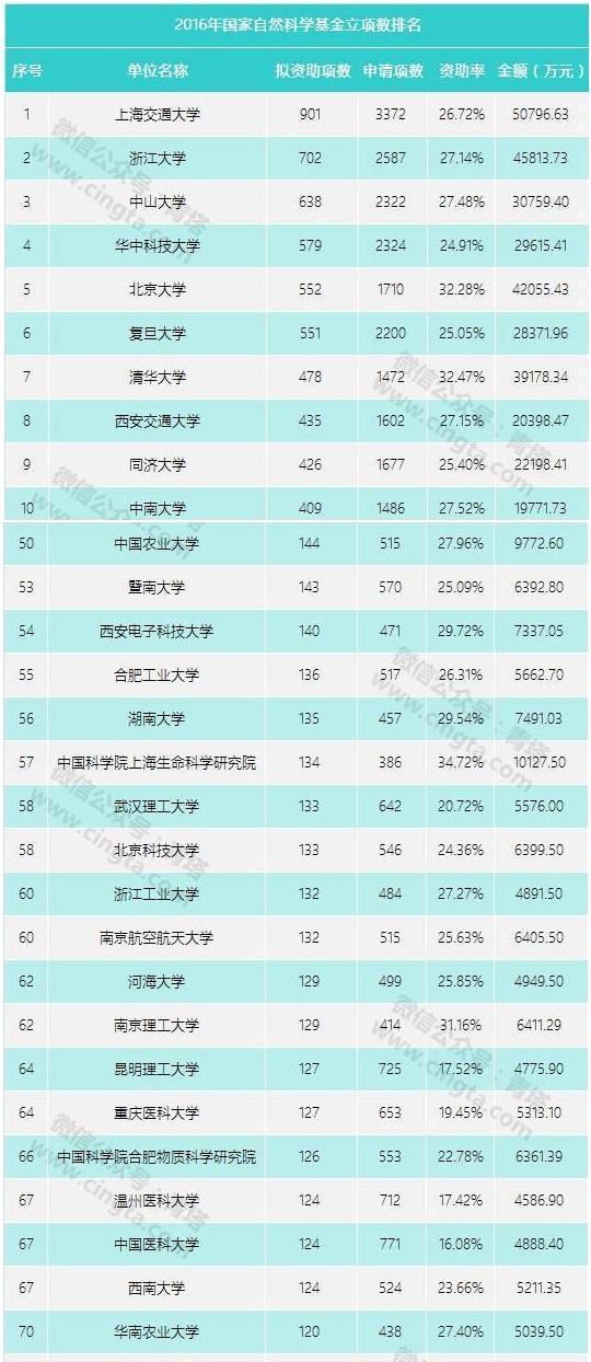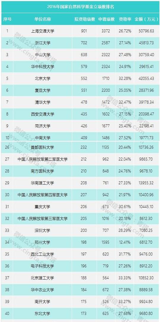8月17日下午,2016年国家自然科学基金申请项目评审结果终于在千呼万唤中出炉了,在此对部分高校今年获得的国家自然科学基金情况进行了统计。