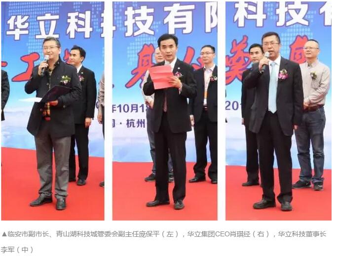 10月18日上午,华立城西智能硬件制造基地开工奠基仪式在杭州城西科创大走廊西至的青山湖科技城临安科技大道横板工业区举行,临安市副市长、青山湖科技城管委会副主任庞保平,青山湖科技城管委会和青山湖街道主要领导,华立集团CEO肖琪经、华立科技董事长李军、华正新材董事长刘涛等华立体系高管人员参加仪式,并共同动土奠基开工。