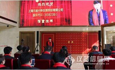 2016年10月25日,上海北裕分析仪器股份有限公司(证券简称“北裕仪器”,股票代码:838239)新三板挂牌敲钟仪式在北京成功举办。北裕仪器董事长陈凡携公司高管及员工代表出席挂牌敲钟仪式,共同见证了北裕仪器敲响开市宝钟的重要时刻。