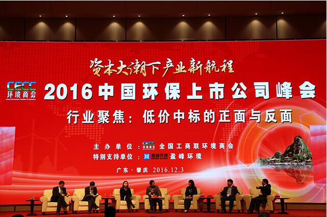 12月3-4日,由全国工商联环境商会主办、肇庆市政府联合主办的“2016中国环保上市公司峰会暨肇庆金秋经贸洽谈会”在广东肇庆召开。