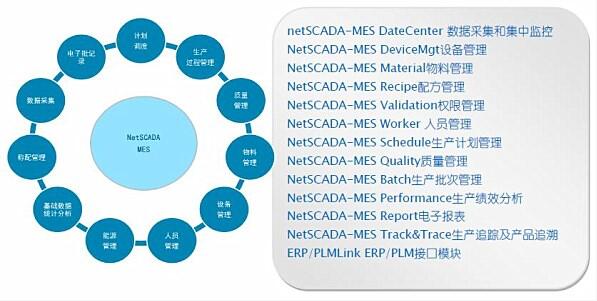 图为“海得NetSCADA MES系统”及相关解决方案涉及的诸多功能模块