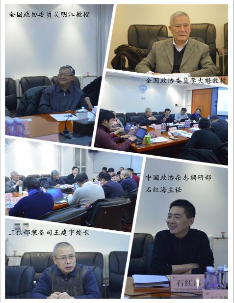 为推动落实“全国卫生与健康大会”有关会议精神,进一步了解工业和信息化部、国家卫生计生委(以下简称“两部委”)共同推动国产医疗设备发展有关工作情况,探讨我国医疗仪器与设备产业化发展路径模式,2016年12月14日,全国政协委员、科教文卫体委员会委员、原卫生部医政司司长、中华医学会原副会长兼秘书长吴明江教授,第十一届全国政协委员、北京协和医院原药剂科主任李大魁教授,《中国政协》杂志社调研部石红海主任莅临我所调研座谈。工业和信息化部装备工业司王建宇处长,中国医学装备协会崔泽实副秘书长,仪综所欧阳劲松所长、战略规划室宋彦彦主任、医疗设备可靠性研究室李春霞主任、科研发展处安程博士、传感与网络控制中心杜晓辉博士等参加了本次调研和座谈活动。