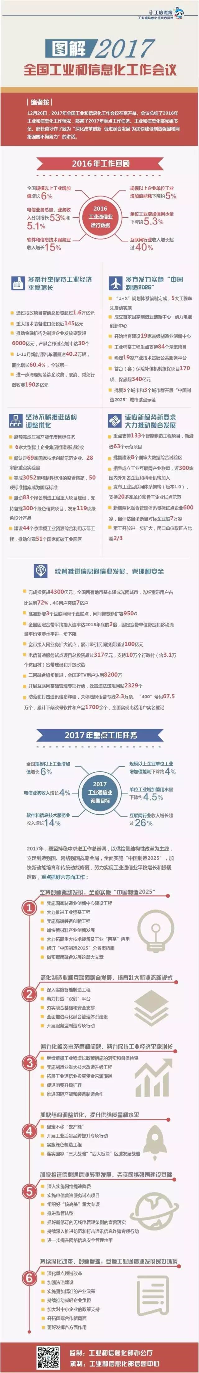 2017年全国工业和信息化工作会议今日在京开幕。会议总结了2016年工业和信息化工作情况,并对2017年重点工作任务进行了部署。