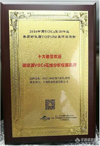 “2016中国VOCs检测行业—年度好仪器TOP10公益评选活动”历经6天、30个品牌公开、公平、公正的激烈角逐,磐诺PGC-80在线气相色谱仪凭借良好的群众口碑,最终晋升TOP10,荣获“十大最受欢迎固定源VOCs在线分析仪器品牌”!