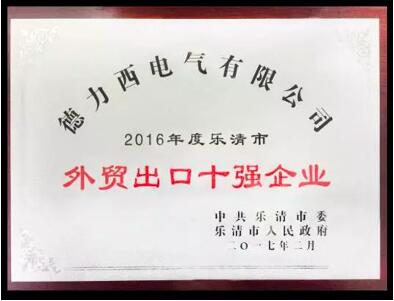 (原标题:德力西电气蝉联乐清市年度“外贸出口十强企业”桂冠)