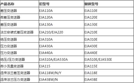 此次横河川仪停止销售EJA-A系列差压(压力)产品及其未来替代型号,如下表所示: