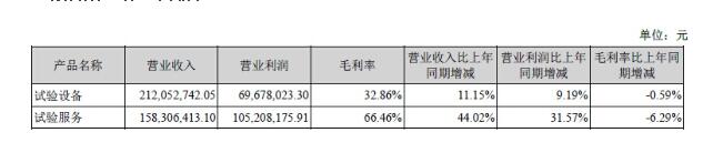 报告期内,试验服务收入158,306,413.10元,同比增长44.02%,试验服务收入的增长是公司营业收入增长的主要原因。