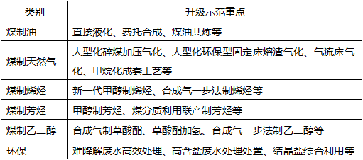 认真总结前期产业化示范经验教训,主动适应产业发展新趋势和市场新要求,突破部分环节关键技术瓶颈,提升系统集成优化水平,推动产业技术升级。重点开展煤制烯烃、煤制油升级示范,提升资源利用、环境保护水平;有序开展煤制天然气、煤制乙二醇产业化示范,逐步完善工艺技术装备及系统配置;稳步开展煤制芳烃工程化示范,加快推进科研成果转化应用。