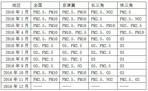 在大气污染防治工作中,部分区域将治霾和防霾聚焦于PM2.5的监测和管控。事实上,由于我国地域广阔、四季明显、各地工业产业差异大,不同地区不同季节的污染存在很大差别,仅监测PM2.5是远远不能满足需要的。以2016年为例,全国、京津冀、长三角、珠三角首要污染物分布见图1。