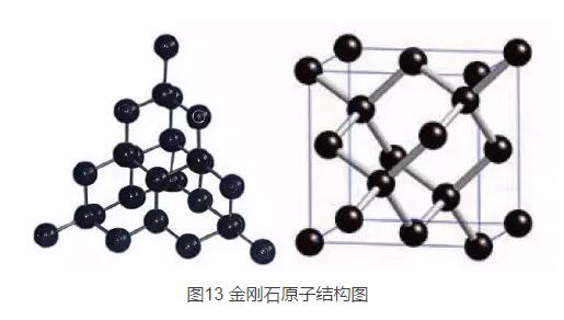 小布拉格在用特征 X 射线分析了一些碱金属卤化物的晶体结构之后,与其父亲合作,成功地测定出了金刚石的晶体结构,并用劳厄法进行了验证。金 刚石结构的测定完美地说明了化学家长期以来认为的碳原子的四个键按正四面体形状排列的结论 ( 如图 13 所示 )。这对尚处于新生阶段的 X 射线晶体学来说 非常重要,充分显示了 X 射线衍射用于分析晶体结构的有效性,使其开始为物理学家和化学家普遍接受。 布拉格父子因在用 X 射线研究晶体结构方面所做出的杰出贡献分享了 1915 年的诺贝尔物理学奖。值得一 提地是,尽管老布拉格最初认定 X 射线是穿透性很强的中性微粒,反对波动的观点,但随着科学的发展, 布拉格不仅接受波动观点,而且也做出了杰出的贡献。