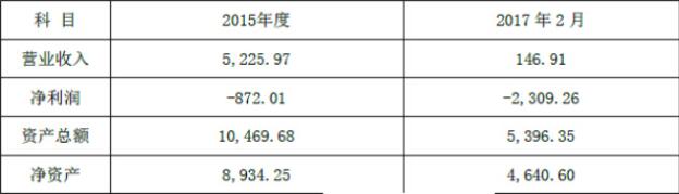 注:上述数据中2015年度财务数据已经天职国际会计师事务所审计,2017年2月未经审计,最终财务数据以其出具的审计报告为准。