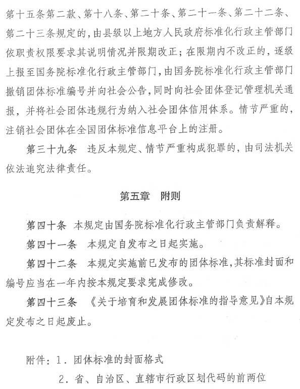 《团体标准管理规定》(征求意见稿)分为5章,共43条,从团体标准的制定要求、团体标准的实施和应用、团体标准的监督等方面做出规定,并在附件中给出了团体标准的封面格式。