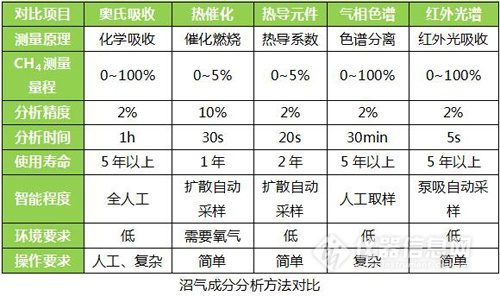 目前该检测方法已广泛应用在煤矿瓦斯抽排领域,也可用于沼气中甲烷浓度的测量。但该类型传感器使用寿命一般在2年左右,且该传感器对于低浓度测量,具有较大局限性,如无法测量浓度低于5%的甲烷浓度,如果用于甲烷的泄露报警将会造成较大误差。
