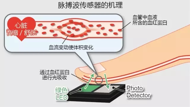 脉搏传感器主要应用在各种可穿戴设备和智能医疗器械上。典型应用是iWatch。