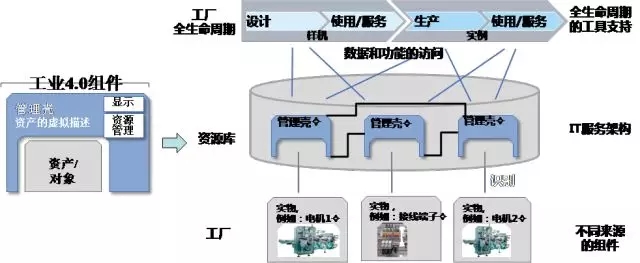 图5 工业4.0组件及基于工业4.0组件的工厂资产建模