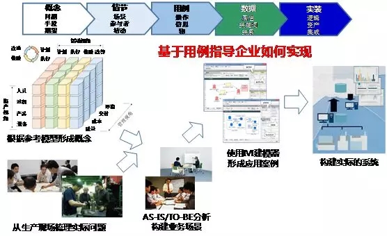 IVI提出IVRA的一个主要目的在于分析制造过程中哪里存在问题,并理清提供解决方案的系统范围[9]。因此,IVI在定义IVRA模型的同时,配套实施了一系列步骤,来推动IVRA在智能制造中得以真正应用,如图9所示。首先基于概念化的IVRA统一参考架构模型,定义用户(工厂)生产现场中存在的实际问题,经过AS-IS/TO-BE分析,使用“IVI用例器”工具来形式化描述业务场景,最终指导在工厂中构建实际的制造系统。这种标准化描述的业务场景更容易取得解决方案供应商和制造用户的一致理解。