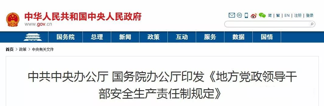 中共中央办公厅 国务院办公厅日前印发《地方党政领导干部安全生产责任制规定》,并发出通知,要求各地区各部门结合实际认真遵照执行。